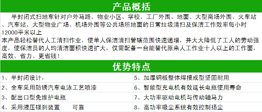 產(chǎn)品分類:駕駛式掃地機(jī)產(chǎn)品特點(diǎn):1、駕駛式掃地機(jī)1580特別配備出口型免維護(hù)電瓶,區(qū)別于市面上其他電動(dòng)掃地機(jī),其智能型充電機(jī)能有效延長(zhǎng)電瓶使用壽命,可使連續(xù)工作時(shí)間更長(zhǎng)。2、底部主刷和兩側(cè)邊刷可自由調(diào)節(jié)高度使清掃效率更高,完成1000㎡的地面清掃工作僅需6分鐘。3、操作簡(jiǎn)單、使用方便,工作人員無需特別培訓(xùn),“保安大叔也能輕松操縱自如”。4、配備高功率吸塵系統(tǒng)有效控制揚(yáng)塵,特有的灑水降塵功能還可以在進(jìn)行清掃地面工作的同時(shí)灑水以達(dá)到降塵作用。適用環(huán)境:物業(yè)、工廠車間、車站機(jī)場(chǎng)、停車場(chǎng)、廣場(chǎng)、市政單位、醫(yī)院、學(xué)校、大型商場(chǎng)等。